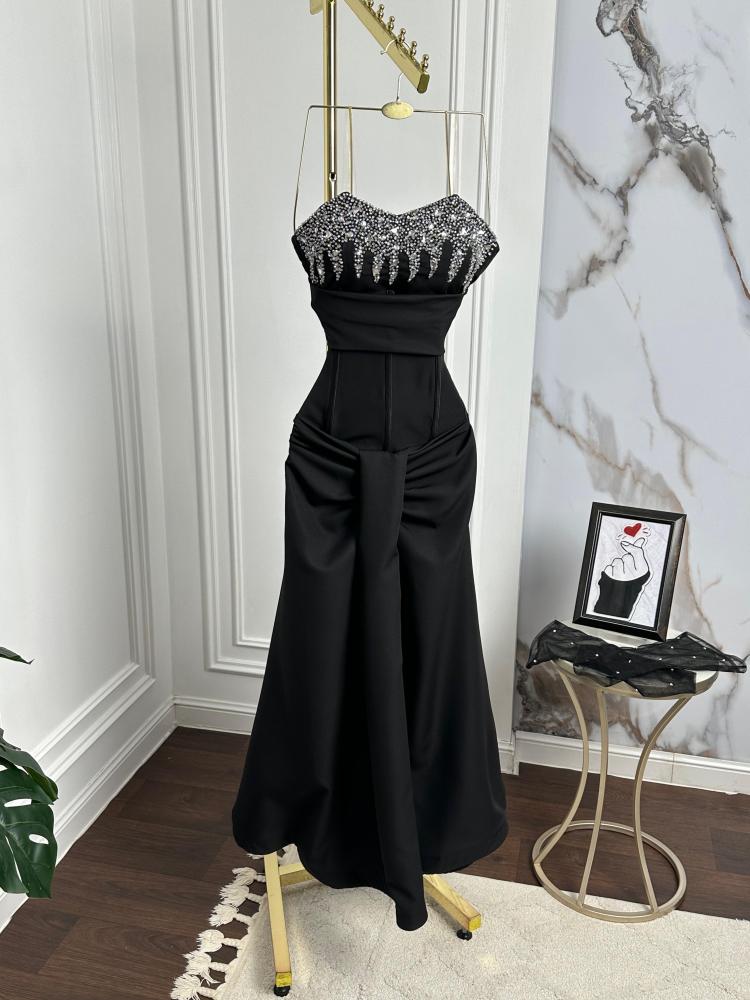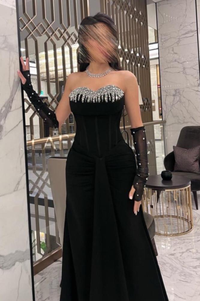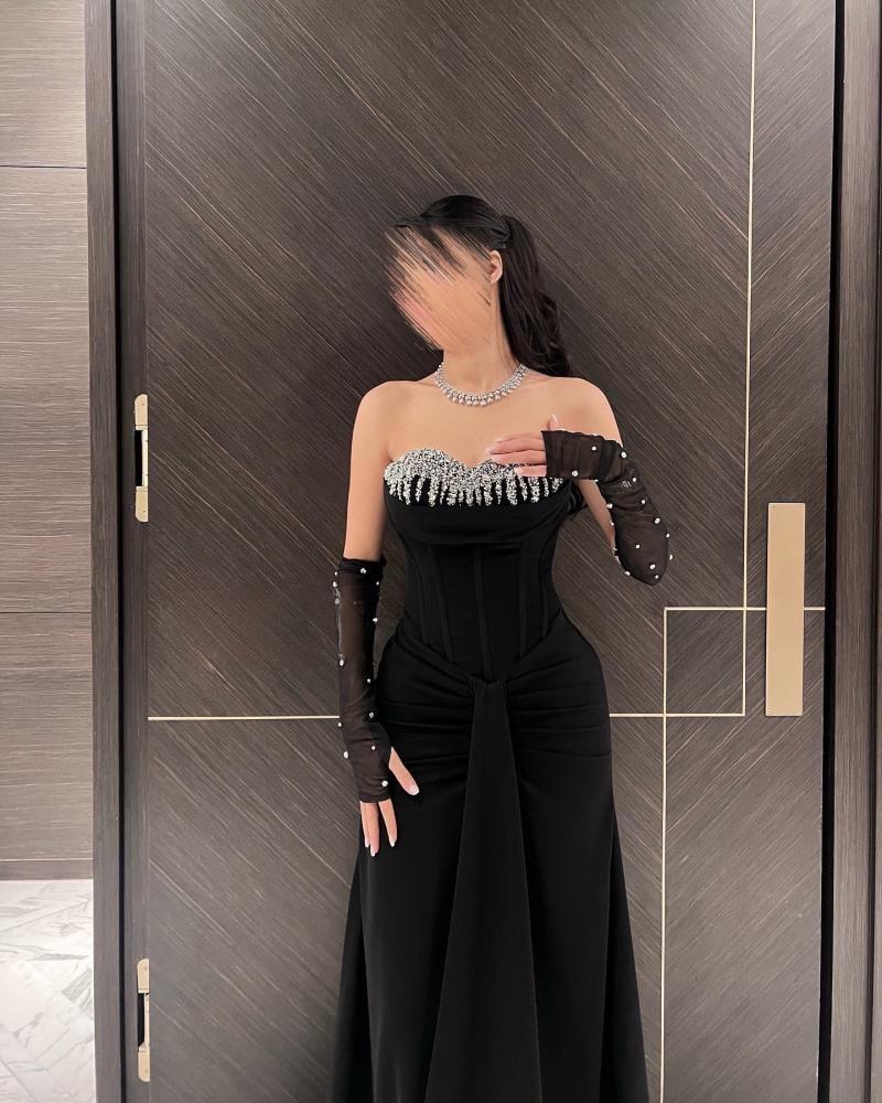 فستان سهرة خامة باربي مع تطريز كريستال اكمام تل مطرز مكس توب