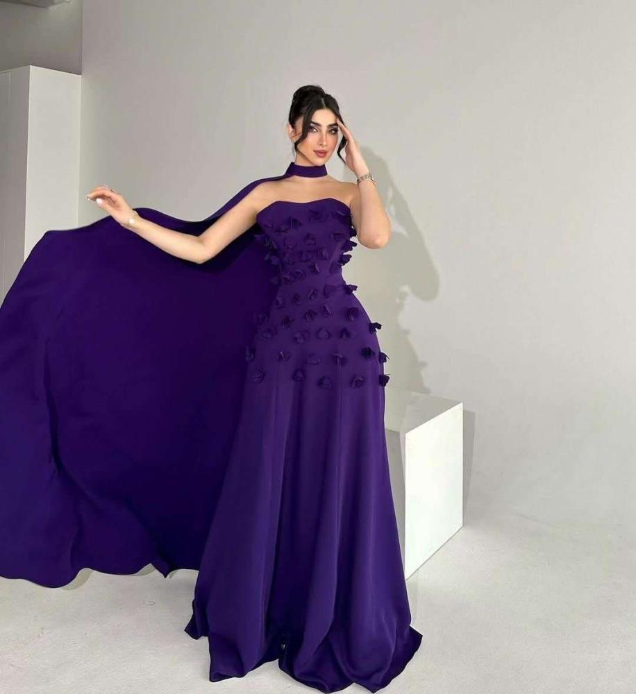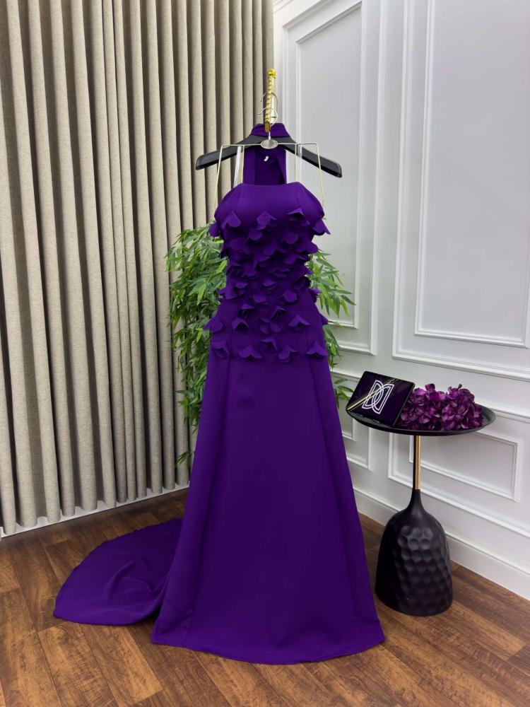 فستان سهرة انيق بالون البنفسجي شيفون  مكس توب