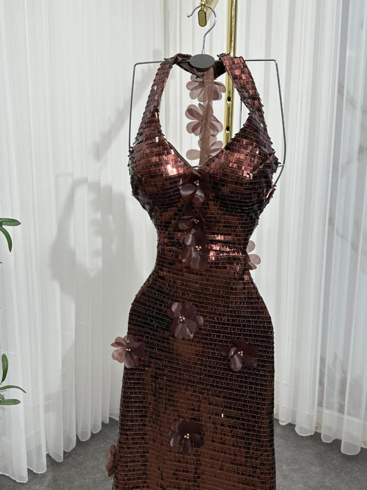 فستان أنيق القماش | ترتر ورود قص ليزر  مكس توب