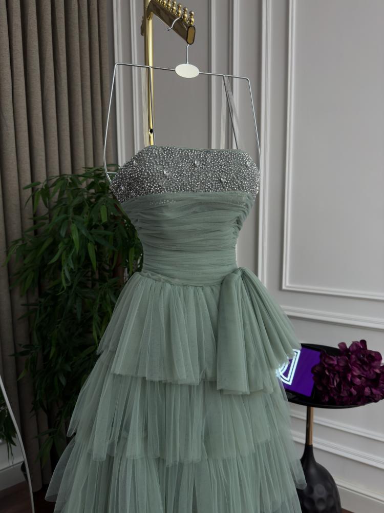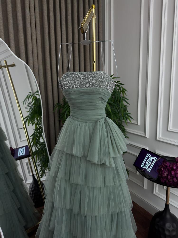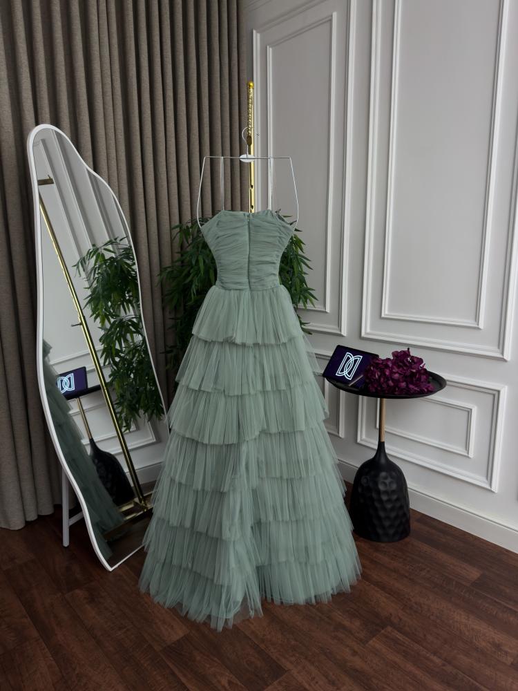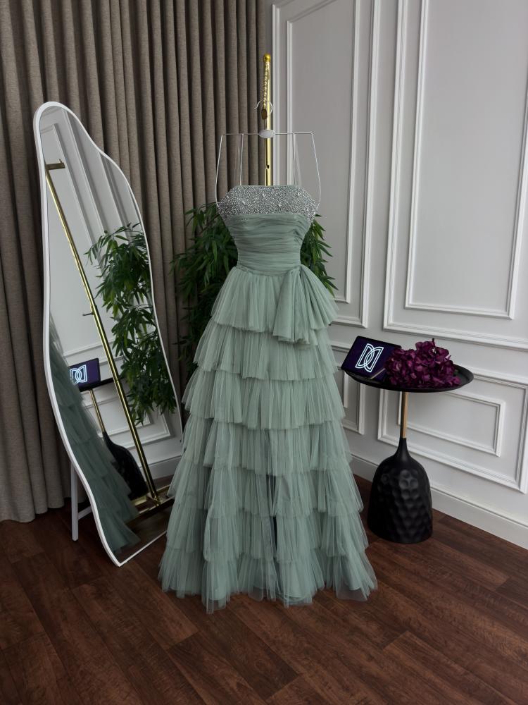 فستان سهره تل طبقات تطريز يدوي دبل كلوش موجود شال مع الفستان