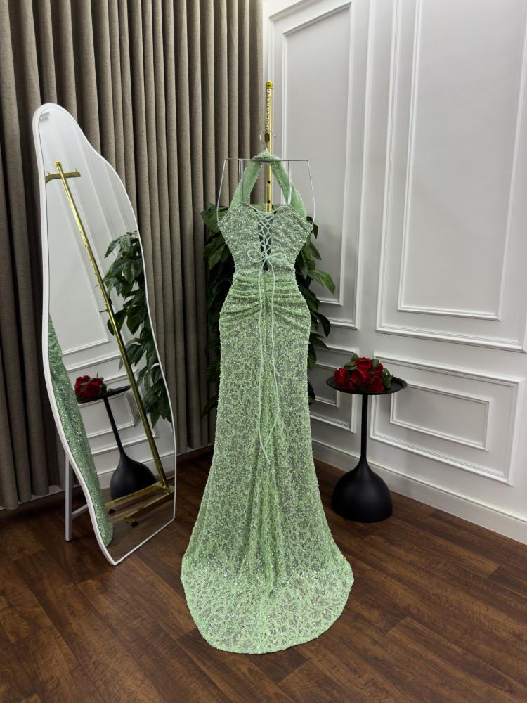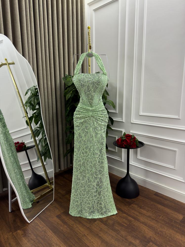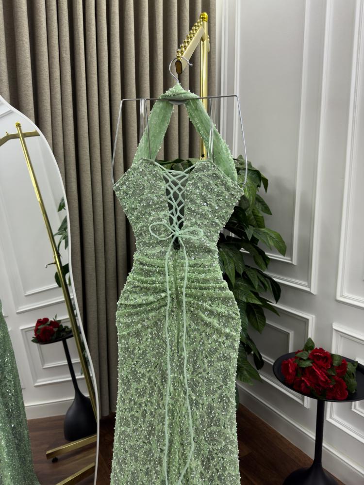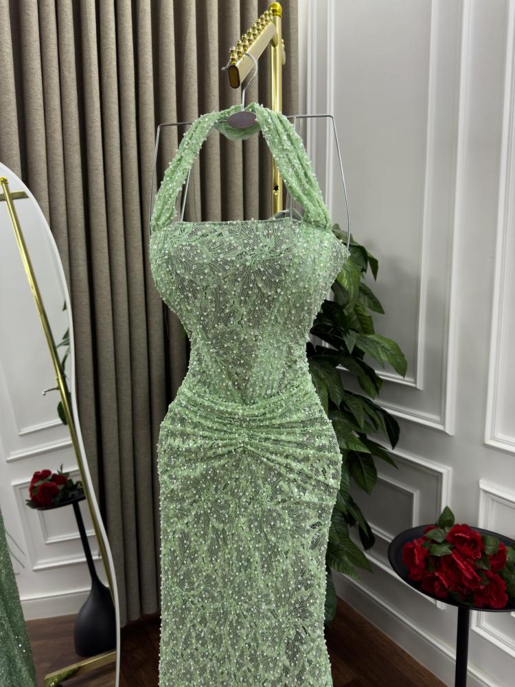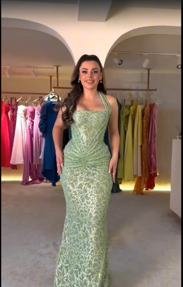 فستان سهره القماش تل وخرز ودانتيل مطرز مكس توب