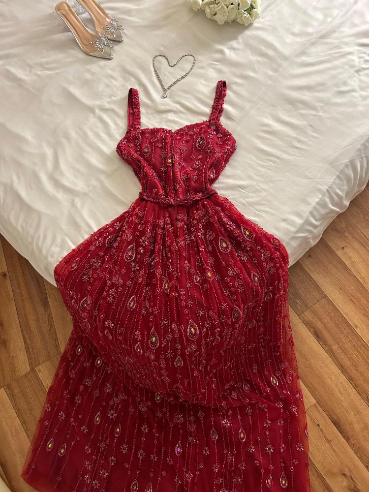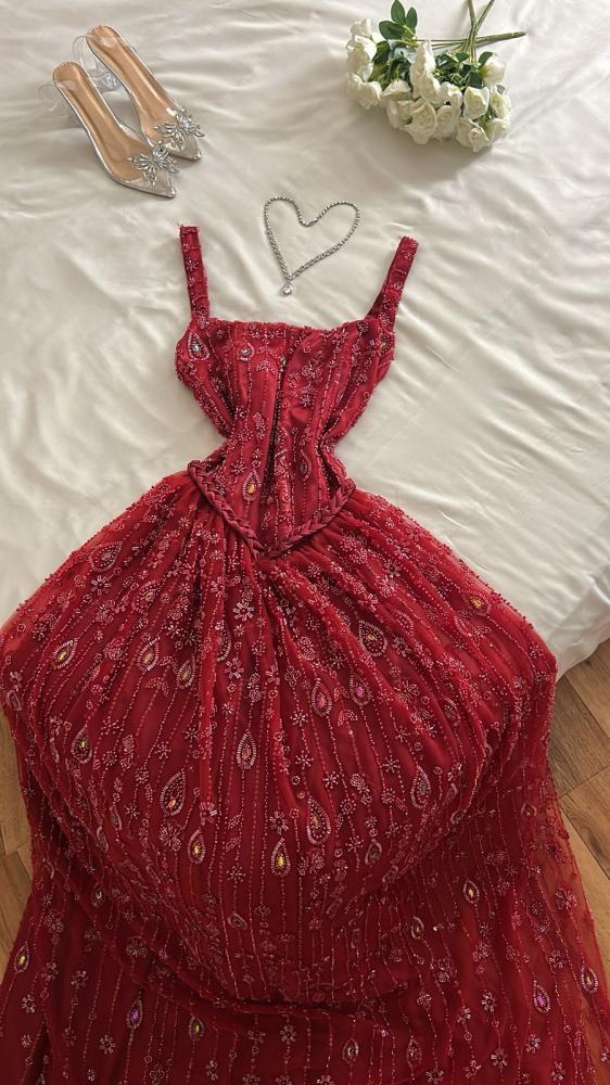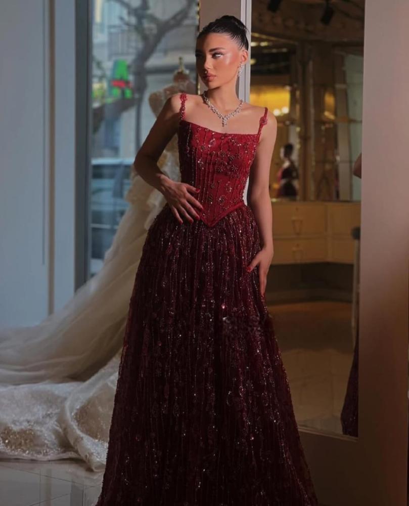 فستان سهرة كلفة مطرزه بشغل راقي مكس توب