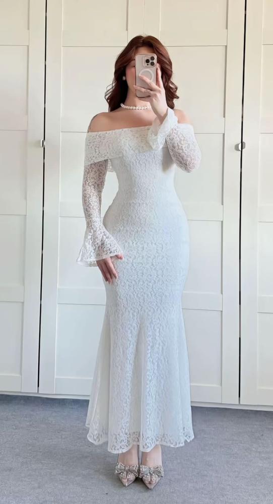 فستان فخم بخامة الدانتيل الاصلي مكس توب
