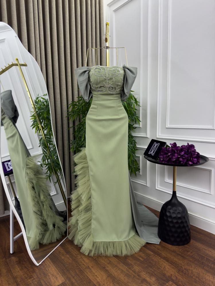 فستان سهرة باربي وذيل طويل شانطون تطريز شك مكس توب